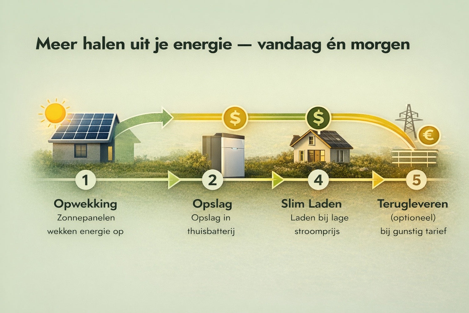 Een plug and play thuisbatterij is interessant als je zonnepanelen hebt en meer van je eigen stroom wilt gebruiken, vooral in de avond. Ook bij dynamische energieprijzen, netbeperkingen of de wens voor extra energiezekerheid kan dit een slimme keuze zijn. Dankzij de eenvoudige installatie zonder aanpassingen aan de meterkast is het een laagdrempelige manier om te starten met energieopslag. Wij beoordelen altijd eerlijk of dit voor jouw situatie echt toegevoegde waarde heeft.